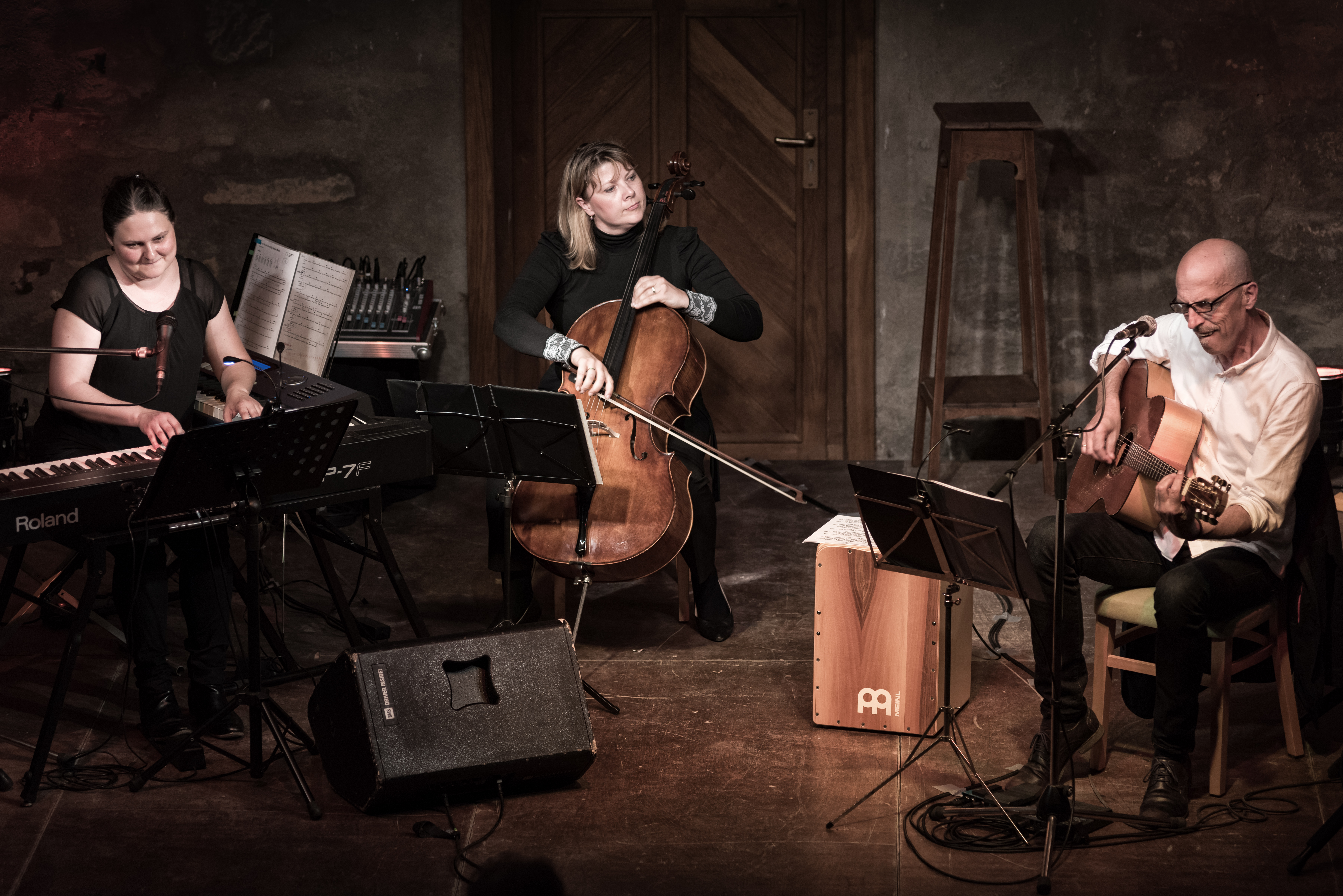 Nach langer Bühnenabstinenz gestalten die Musiker Jürgen Radermacher, Jeanette Latus und Natalia Kazakova einen musikalischen Abend ganz im Zeichen bekannter, deutscher Liedermacher.
