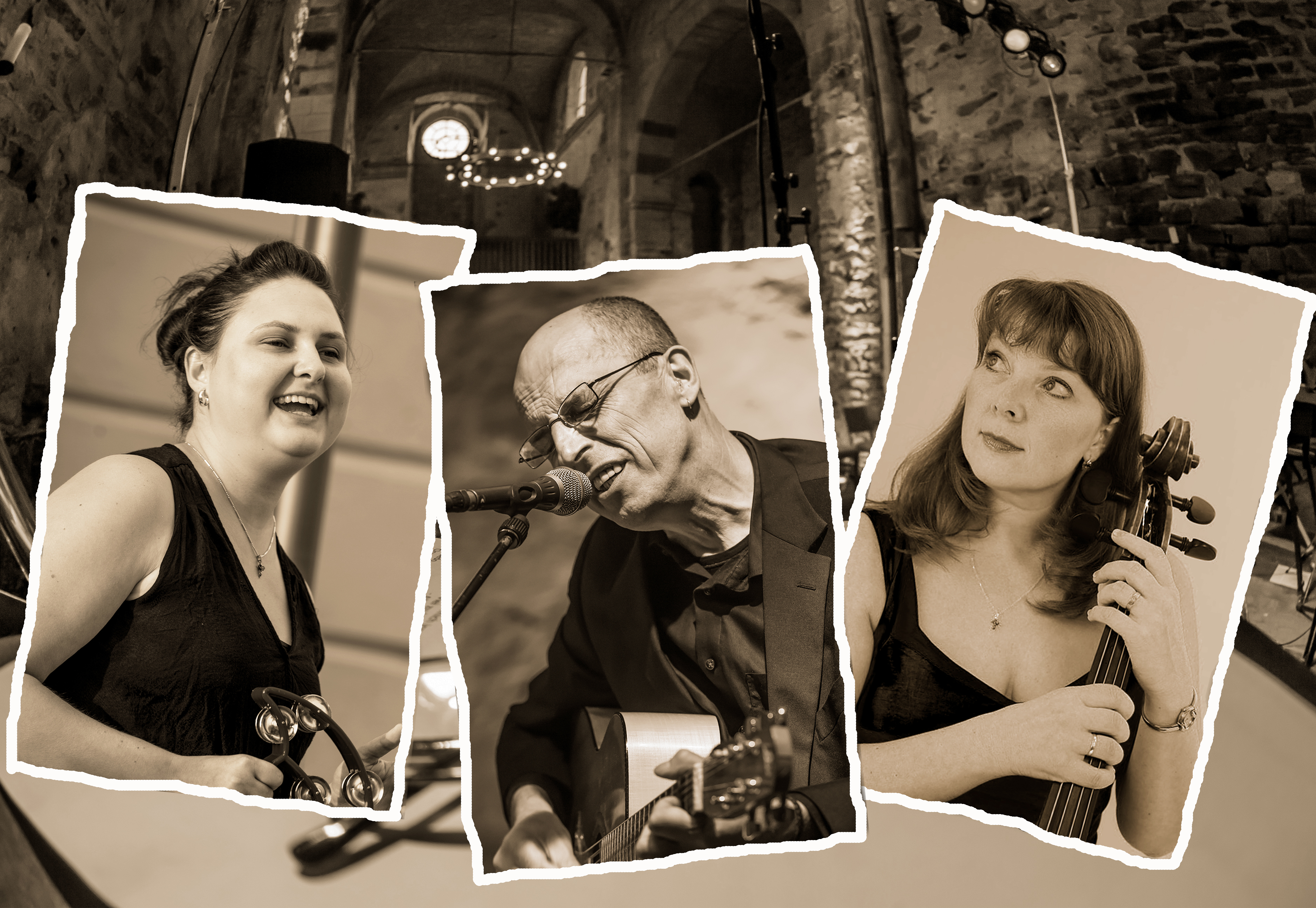 Die Musiker Jürgen Radermacher, Jeanette Latus und Natalia Kazakova gestalten diesmal einen musikalischen Abend ganz im Zeichen bekannter, deutscher Liedermacher.