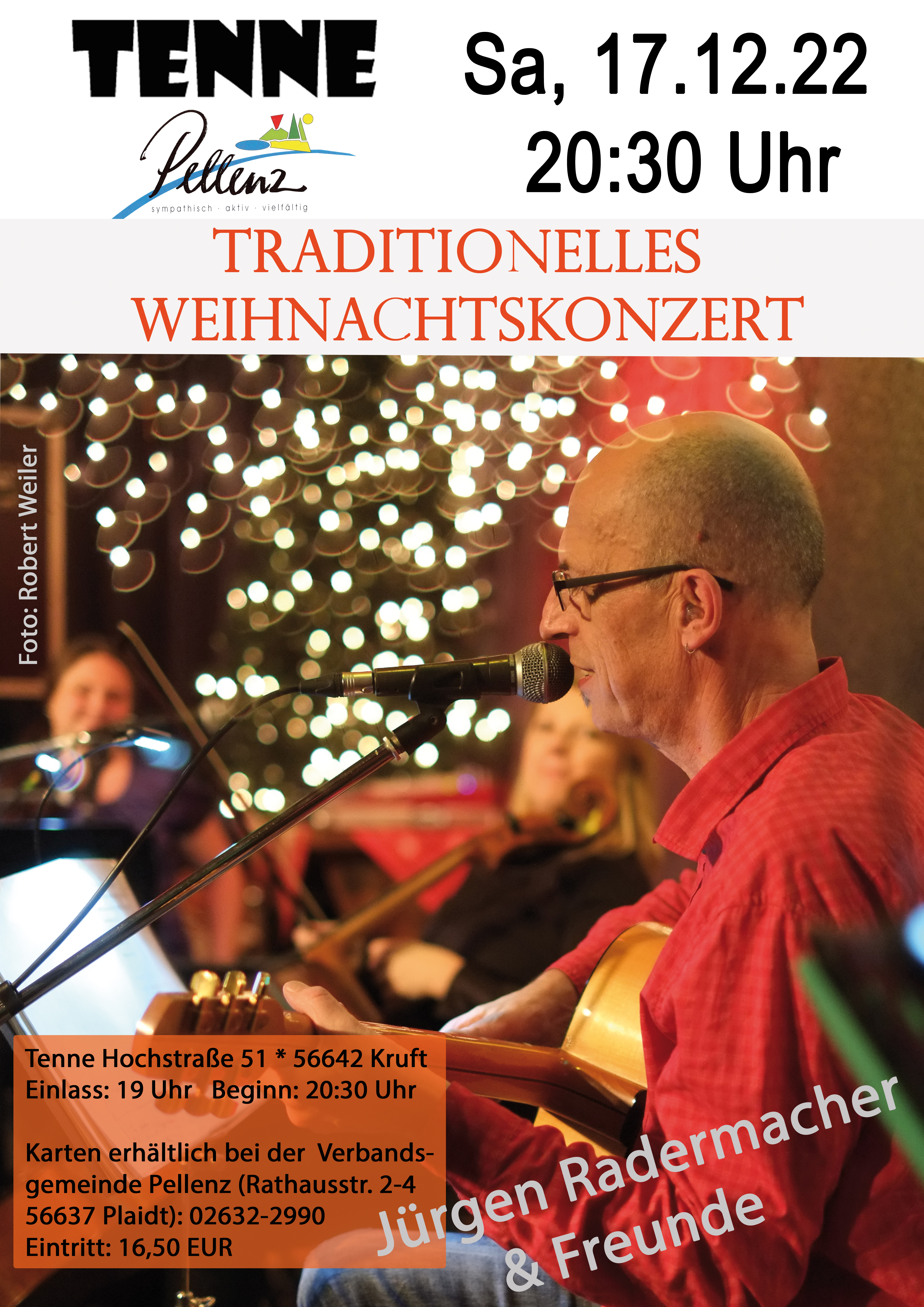 wir freuen uns, dass nach zweijähriger Pause unser traditionelles Weihnachtskonzert in der Tenne wieder stattfindet. Wir danken der Verbandsgemeinde Pellenz für ihre Unterstützung. Euch erwartet ein Programm mit vielen bekannten und neuen Liedern.
