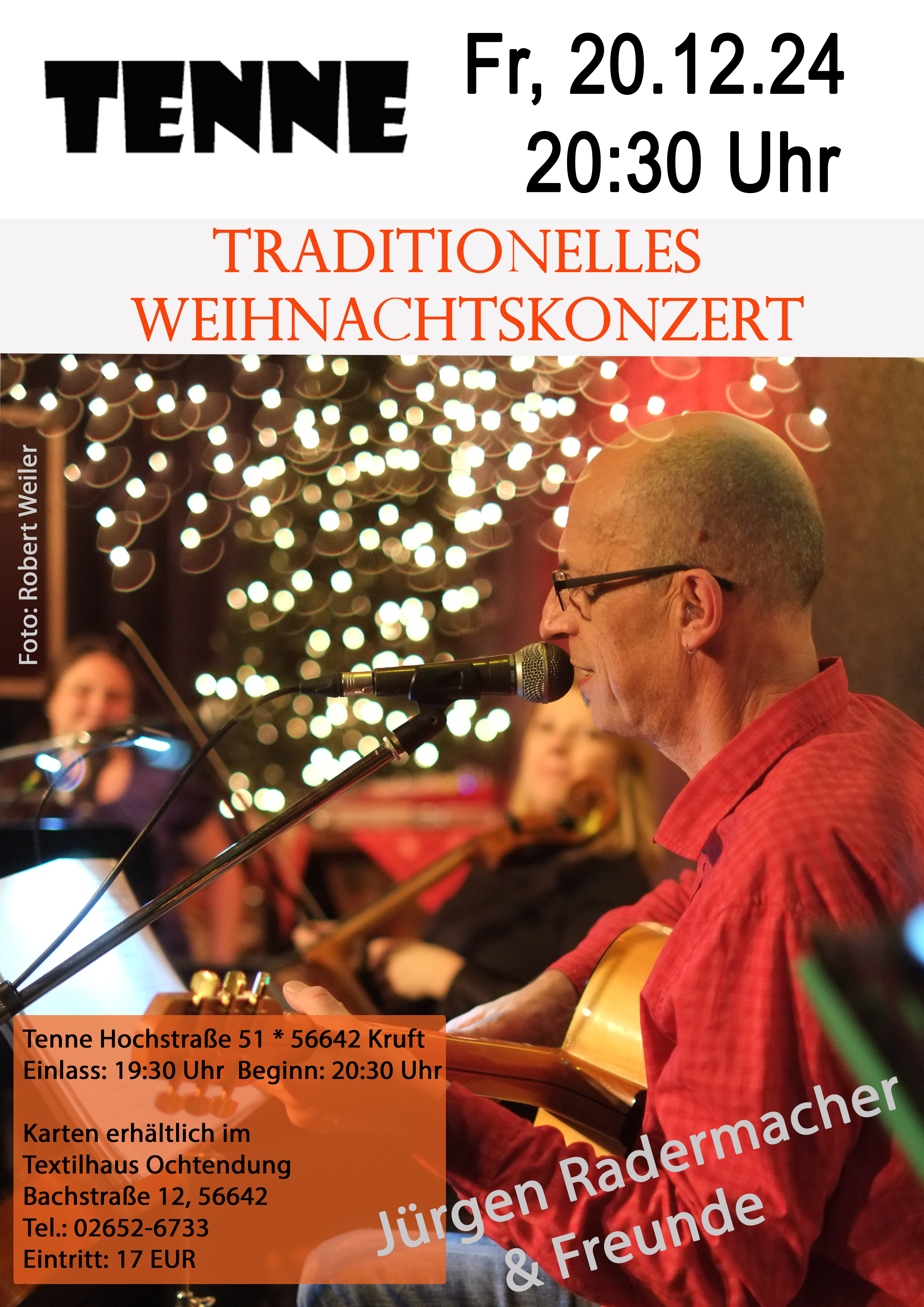 Die Karten können ab Dienstag, dem 03.12.2024 im Textilhaus Ochtendung in Kruft, Bachstraße 12 (Tel. 02652-6733) erworben werden. Kartenreservierung ist leider nicht möglich. Rückerstattung nur bei Ausfall des Konzertes.